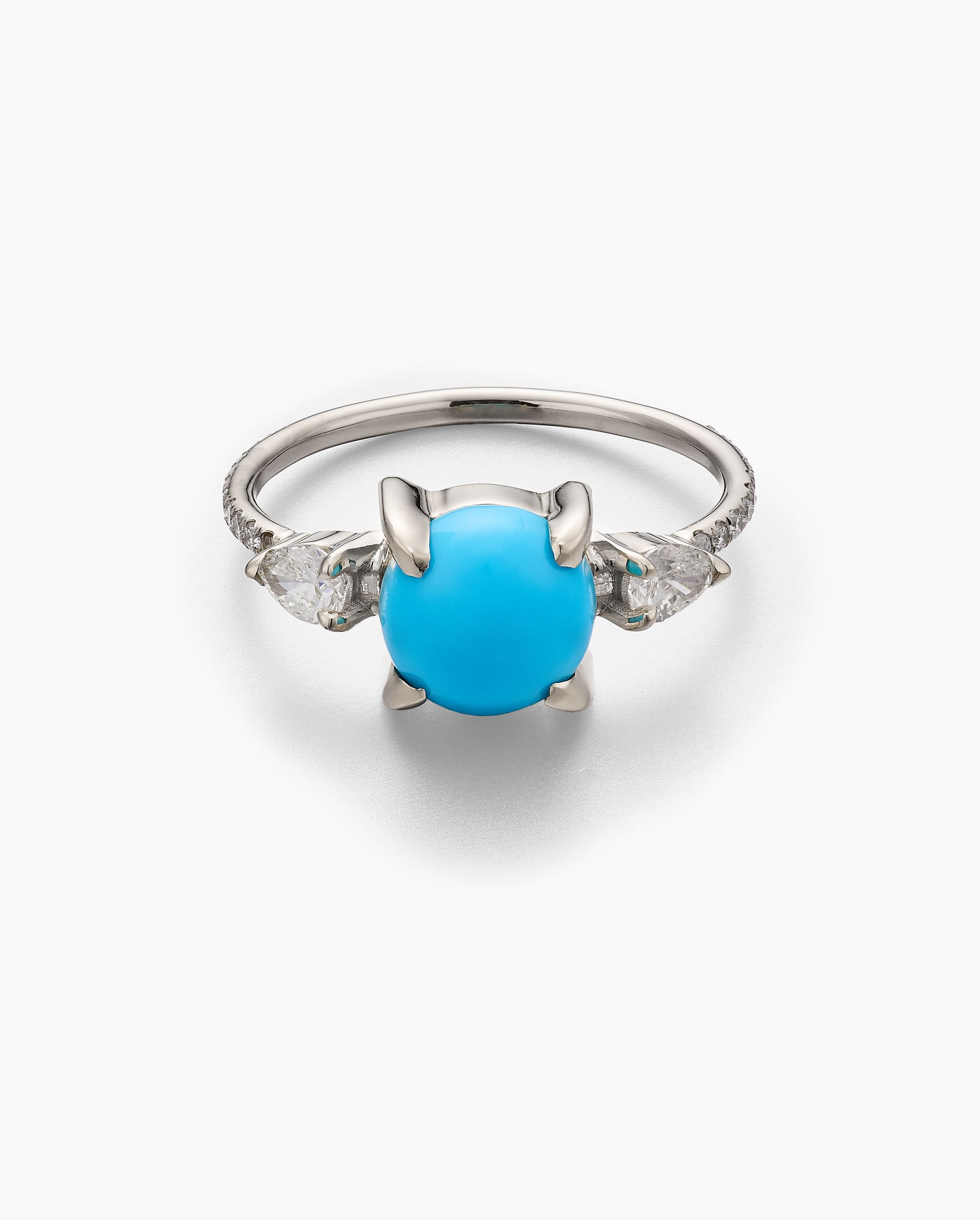 Turquoise Ring with Pear Diamond Side Stones and Pavé